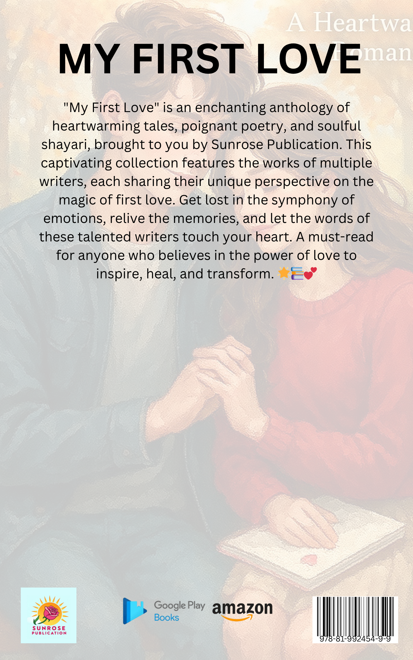 "My First Love" is an enchanting anthology of heartwarming tales, poignant poetry, and soulful shayari, brought to you by Sunrose Publication. This captivating collection features the works of multiple writers, each sharing their unique perspective on the magic of first love. Get lost in the symphony of emotions, relive the memories, and let the words of these talented writers touch your heart. A must-read for anyone who believes in the power of love to inspire, heal, and transform. 🌟📚💕